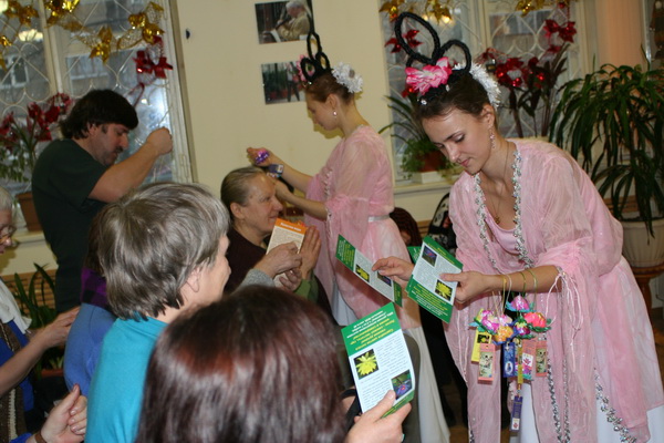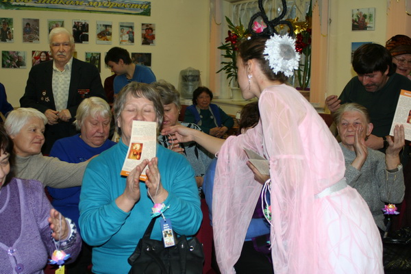 【明慧网二零一零年十二月十六日】二零一零年十月十二日,在莫斯科市西北行政区的“德米特拉夫”综合社会服务中心中,莫斯科法轮功学员热情地为退休老人演出莲花舞等节目,同时向他们发放了法轮大法简介和纸莲花等。学员们希望把大法的美好带给每一位与会的退休老人,再通过他们转达给亲朋好友。