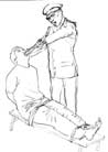 13.拳击耳朵:把一腔怒火发泄到身上,一恶徒突然跳到一法轮功学员身边,没头没脑的对学员几记重拳,其中一拳正中学员的左耳,几乎使学员左耳致聋,耳朵嗡嗡自响,好象是鼓膜穿了孔、直透气。