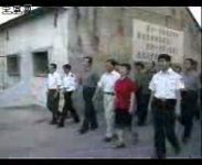 2. 黔驴技穷文攻武斗:那天上午我们三组的人被集中到一个监室,警察也一个个进来与我们相对而坐,房间挤满了人,气氛很紧张。我们还没有搞清楚怎么回事,这时李“博士”开始讲话了,他故作镇静地说:“今天开个批斗会,批斗的对象就是张爱民。”他们命令两个包夹犯人把我象文革中批斗地主、反革命那样把我架飞机,我拼命挣扎,他们就上来几个警察帮忙。李“博士”还在一旁指挥:“把脚抵着”“把手抬高”,就这样我被他们架着开始了批斗,李“博士”先讲了一大堆,最后给我扣上了与人民为敌的大帽子。帽子扣上了,接下来就是包夹犯人一个个的表态,然后是一个个干警批判。整个闹剧演了一个多小时,我就被他们一直架着。我始终头转向一边,没有向他们低头。等整个批斗会开完,我的脚已经失去了知觉,不能站立。这时恶警命令我把手放在膝盖上坐正,我对此置之不理。恶警张白毛跑过来对着我的手就是一脚,踢得我的左手顿时肿了起来。