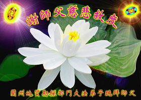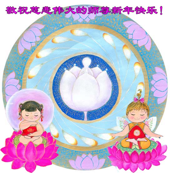 尊敬的师尊:新年好!我们想念师父,盼望师父早日回国。大雪纷飞,喜迎新年。我们家也开了一朵美丽的小花,莲花朵朵迎师尊,佛光普照全宇。正念除恶多救人,精進实修法入心。