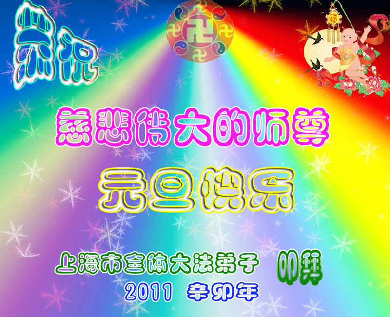 【明慧网二零一零年十二月三十一日】从二零零二年开始,世界各地的大法弟子纷纷在元旦之际,将发自内心的节日贺词、自制的贺卡、诗歌等寄给明慧网,向慈悲无私的师尊李洪志先生恭祝元旦快乐。这里收集的只是中国大陆大法弟子制作的部份二零一一年贺卡,作为元旦贺词的开篇。更多的元旦贺卡和贺词集,将汇集在今明两日发表。