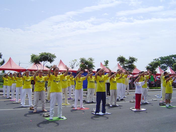 为了更大面积地让民众有机会了解法轮功真相,宜兰学员经常在国际童玩艺术节、苏澳冷泉嘉年华、绿色博览会等假日节庆活动中表演功法,或在县内旅游名胜(如罗东运动公园、冬山河亲水公园等)人潮聚集处炼功洪法。在真相展板旁,一群或老或少、有男有女的法轮功学员,随着悠扬的旋律,缓、慢、圆地安详炼功,法轮功的美好逐渐传遍各乡镇。在民俗节日、地方庆典、学校运动会等活动中,法轮功学员的功法表演更成为广受欢迎的精彩节目之一。