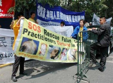 路透社二零零五年九月十二日报导,墨西哥法轮功学员在中共党魁胡锦涛抵达墨西哥城前,在参议院大楼前举办揭露中共迫害的酷刑展。
