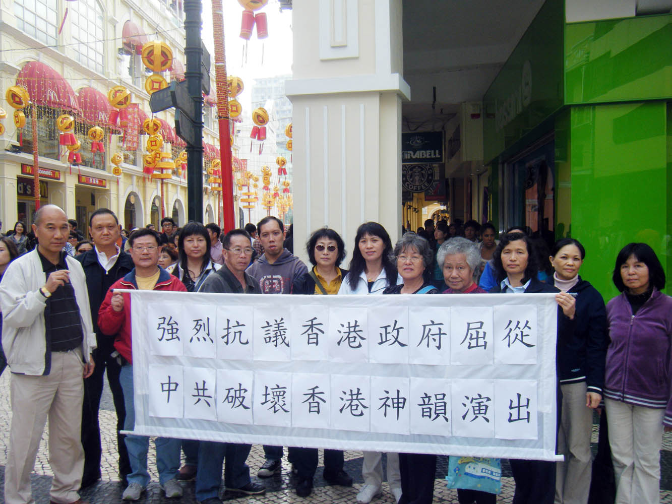 ![]() 澳门市民举行集会抗议港府破坏神韵演出 |