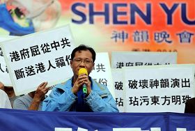 “这一次神韵安排了在香港演出,使得香港人感到非常的振奋,有一次欣赏这么精湛艺术演出的机会,可以领受到中国传统文化艺术的薰陶。但是因为特区政府 拒绝其中的部份工作人员入境,使得这个演出不能够进行,而被迫取消,香港人对这一点感到非常的愤怒,觉得特区政府用这样的手段,剥夺了香港人一次欣赏精湛 传统艺术的机会。”