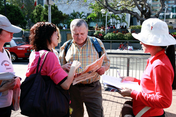 ![]() 市民了解神韵被港府阻隢演出的真相 |