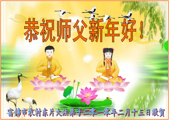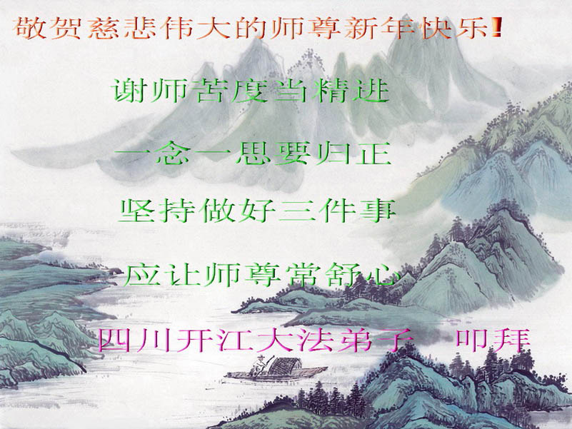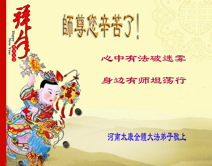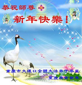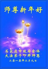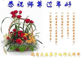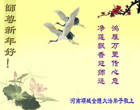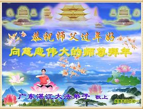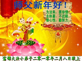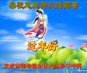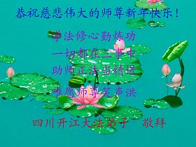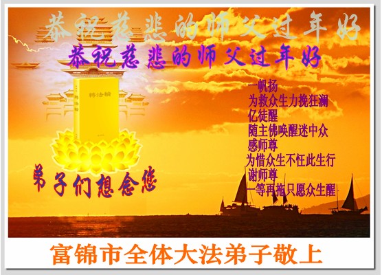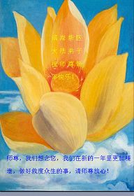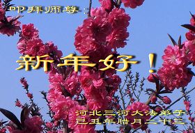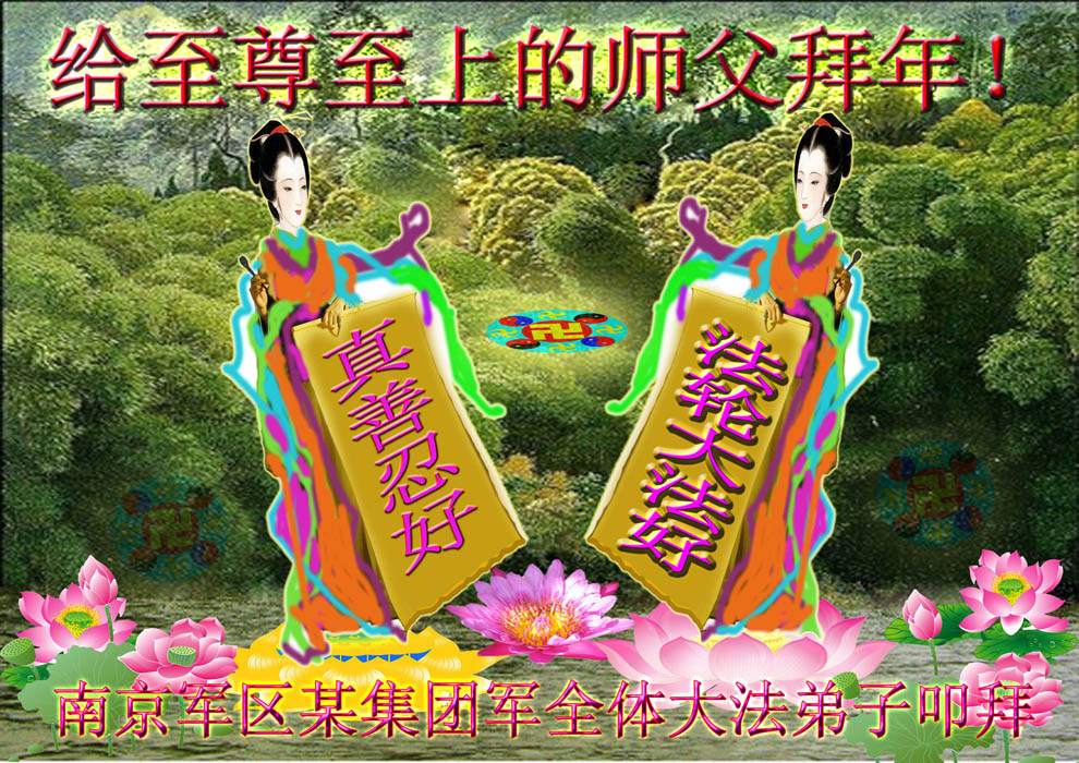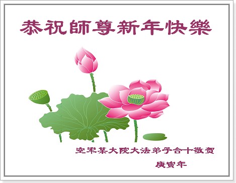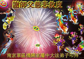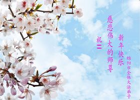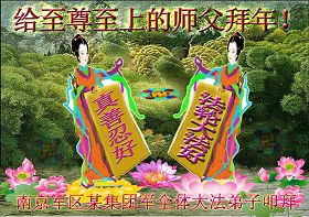 我们军队系统大法弟子非常非常的想念您,我们衷心的恭贺您过年快乐!我们身在中共的军营,深知救人的艰难,但是请师尊放心,我们坚定的信师信法,坚定的走您安排的路,努力做好三件事,决不辜负您的慈悲苦度。