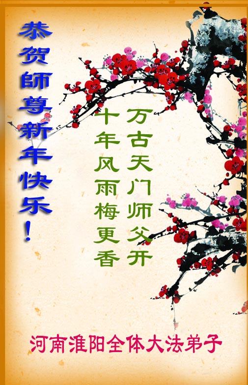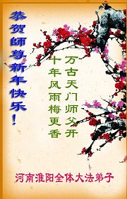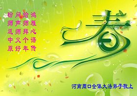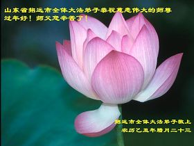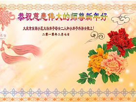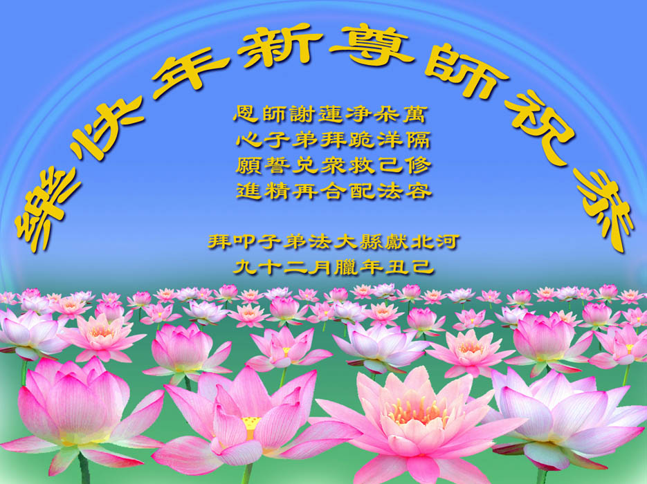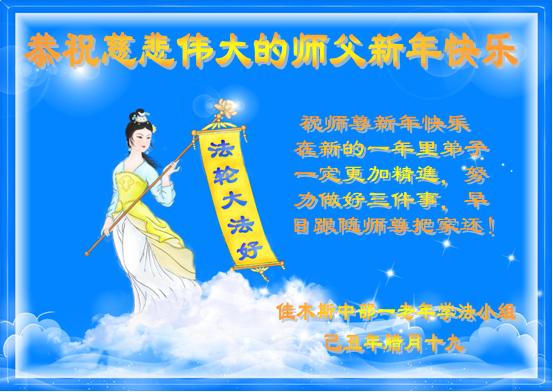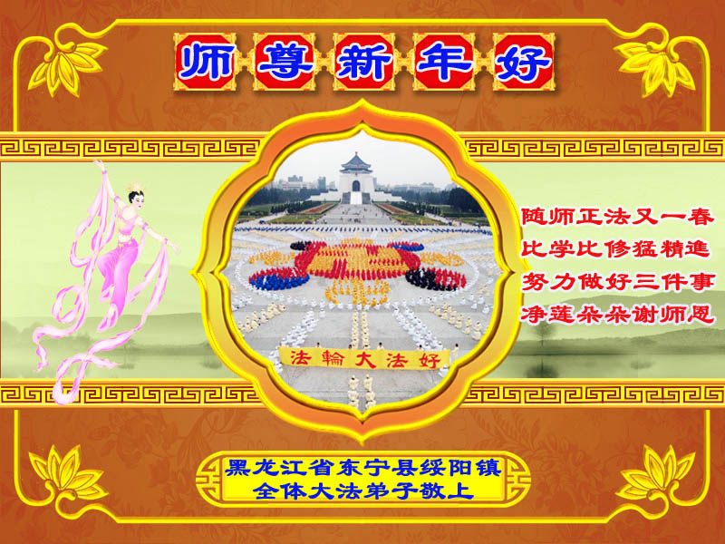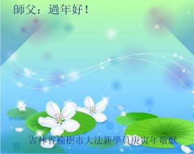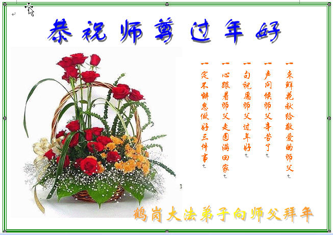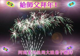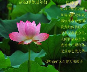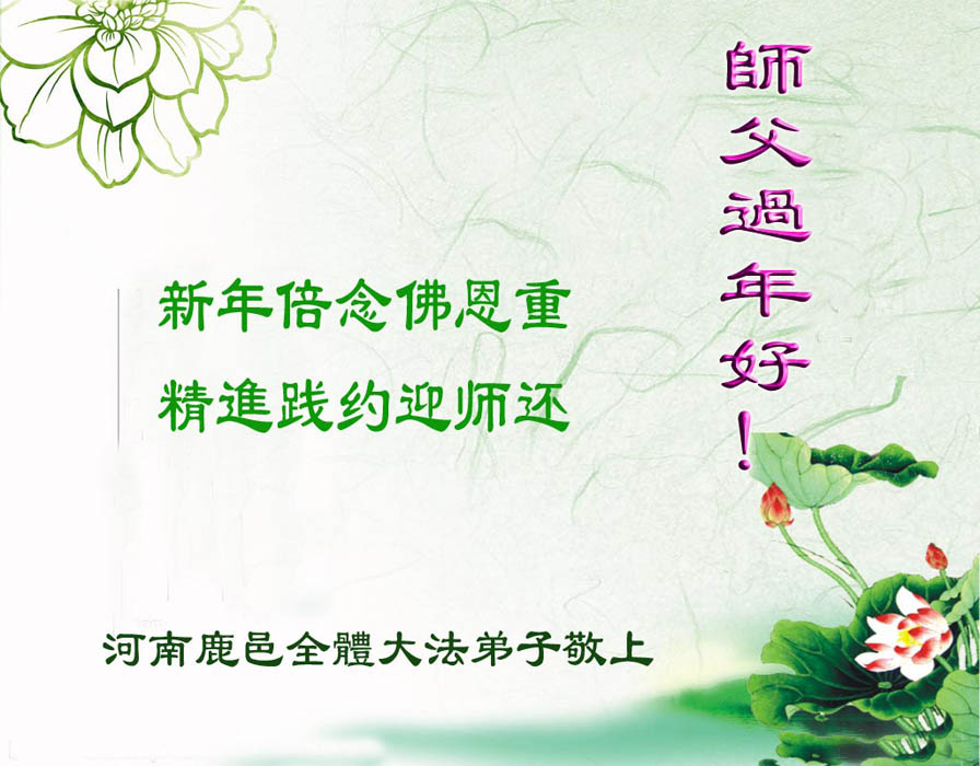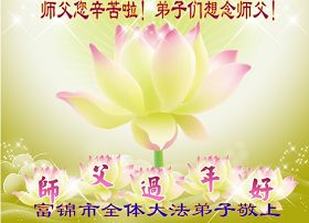 我们军队系统大法弟子非常非常的想念您,我们衷心的恭贺您过年快乐!我们身在中共的军营,深知救人的艰难,但是请师尊放心,我们坚定的信师信法,坚定的走您安排的路,努力做好三件事,决不辜负您的慈悲苦度。