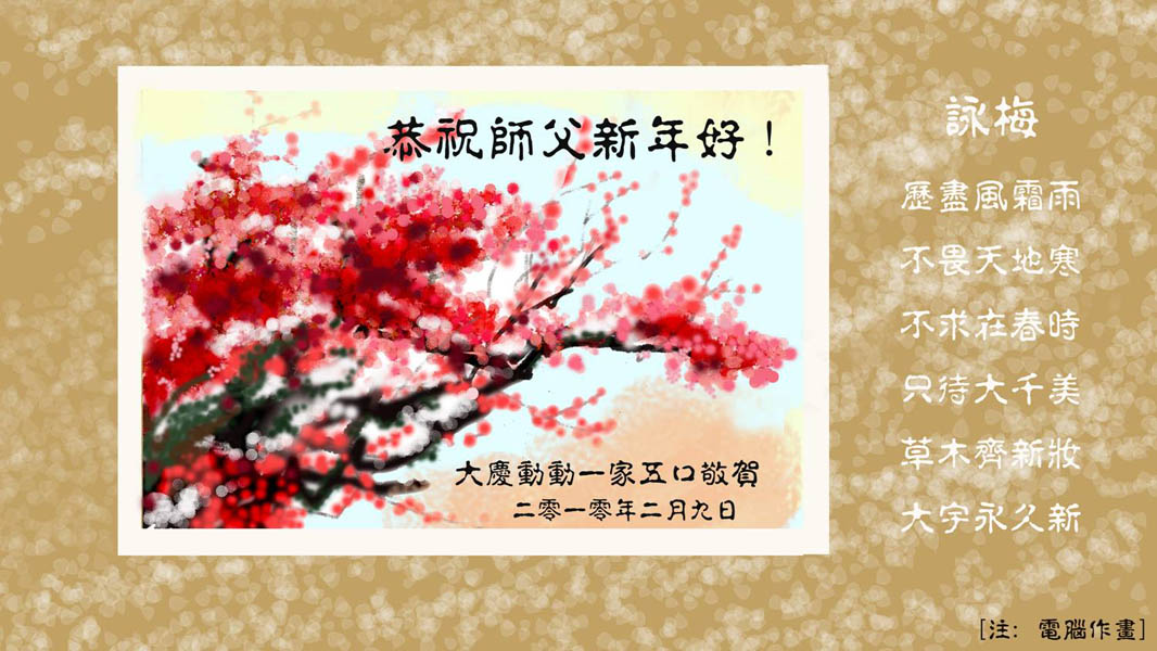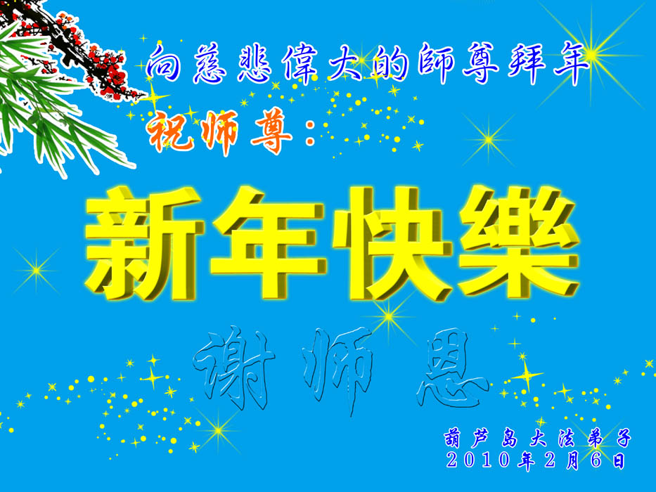 2010年新年就要到了,我们学法小组的全体大法弟子向伟大的师父拜年!