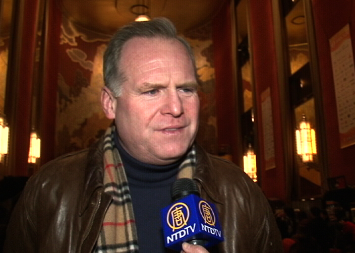 “明天是西洋情人节,神韵是个绝佳的礼物,我也带了我妻子以及女儿来看演出,她们两人都很开心,因为真的是棒极了,这真是让人感到充实、开怀的一天。很高兴我能够亲自观赏到神韵。”