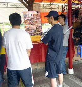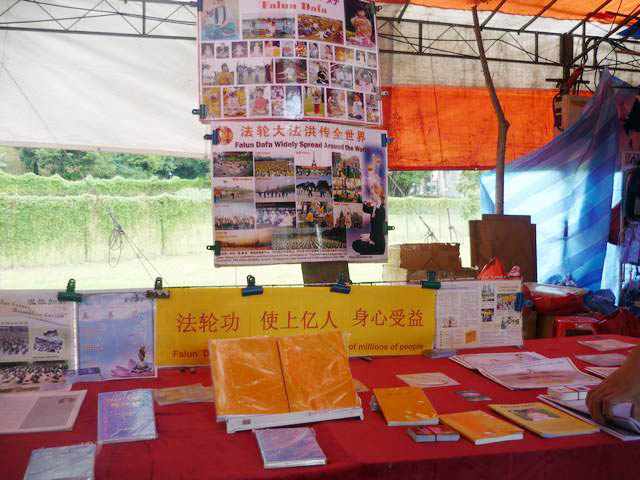 ![]() 新年市场上的法轮功真相展位 |