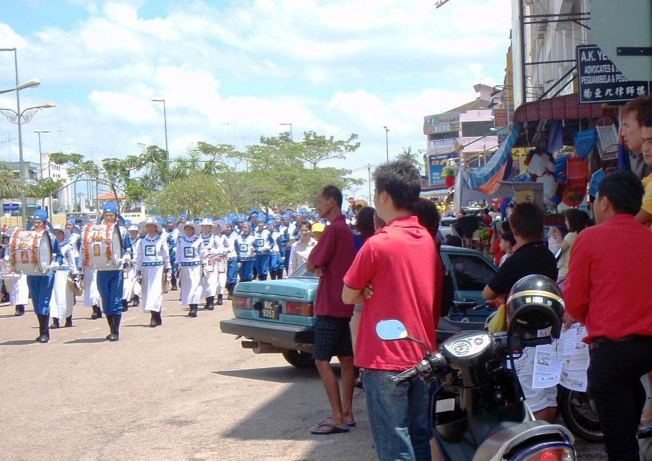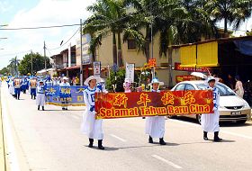 ![]() 法轮功学员在武吉甘密游行,向民众贺年 |