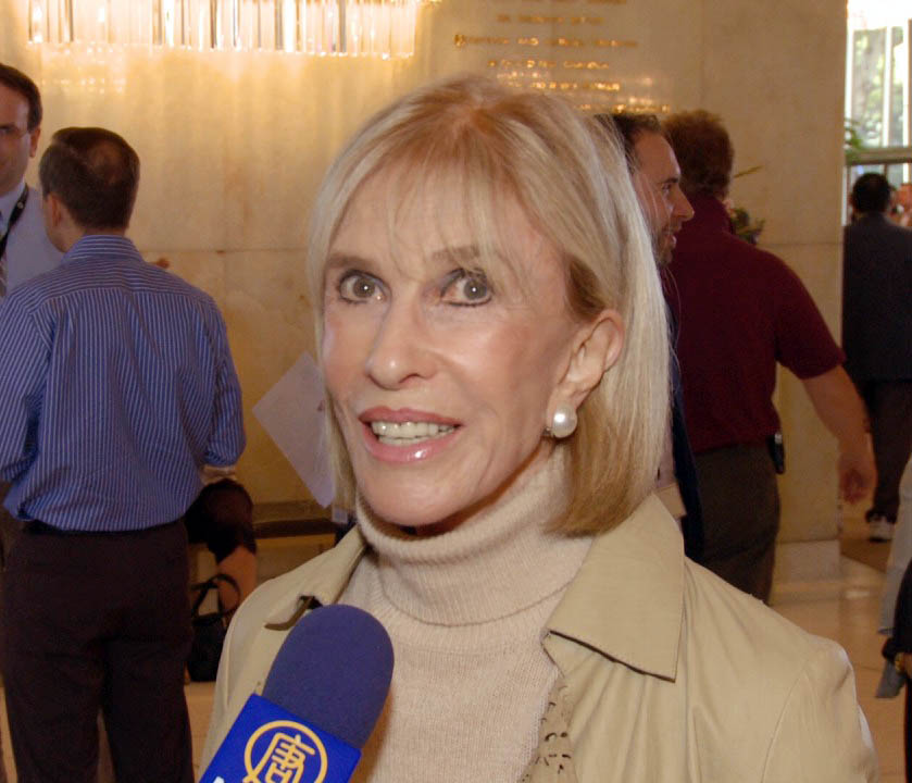 西尔顿女士是洛杉矶迪斯尼音乐厅的常客,她欣赏音乐后,再用画笔把音乐勾勒出来。“今天下午我听到了如此平和的音乐,舞蹈艺术家们通过协调的配合、动作和灿烂的色彩,把一种超凡的视觉韵律带给了我们。不仅是在艺术与文化层面,她还带给我们一些更深层的东西,我感到神韵艺术连接了所有的观众,不管是白人,还是亚洲人。我认为这是一个非常重要的下午。”