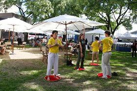 这为期两天的多元文化活动以亚洲为主题,又正逢中国新年,活动现场欢腾热闹。法轮功学员们除了向人介绍功法之外,也义务教人折叠象征修炼者“出淤泥而不染”的高尚品格的纸莲花。每个来过法轮功展位的人都满心欢喜地离开。