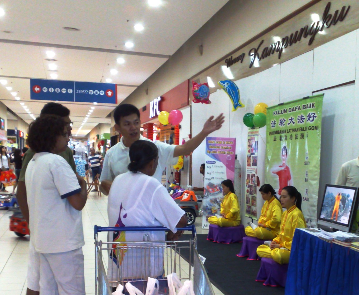 前往超市购买年货的人络绎不绝,法轮功学员的功法演示,让很多光临购物的顾客眼前一亮。不少人表示要学炼,也有很多人向法轮功学员询问一些他们以前的疑惑,学员们尽力为他们一一解答,澄清了不少人们因中共谎言而存在的误解。