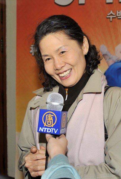 二月二十六日晚,韩国天主教大学教授、大邱文化财(遗产)委员、舞蹈家朴妍镇(Park,Youn-Jin)观赏了神韵在大邱的第二场演出后,为气势恢宏的神韵所感动,“希望神韵能够盛大、长久、无止境地演下去,为后代留下历史和参照的榜样。”