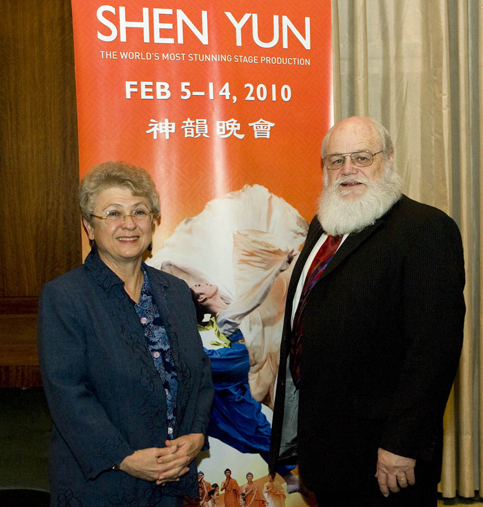 ![]() 橙县布纳公园市(Buena Park)市长亚瑟•布朗(Arthur Brown)携夫人观看了洛杉矶的第二场神韵晚会。 |