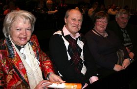 ![]() 布鲁日海关总长Ronny Dobbelaere先生(左二)、夫人和总长的秘书及其丈夫季先生一起观看了神韵演出 |