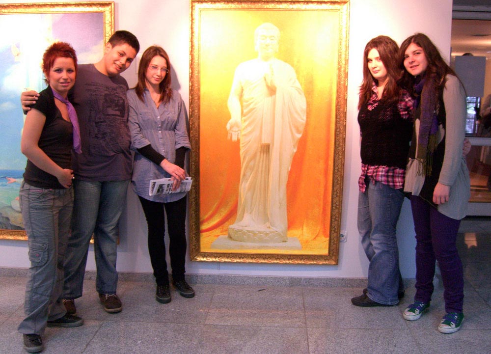 在六天的画展期间,有很多来自不同大、中、小学的学生成群结队前来参观画展。来自Tuncay Azaphan重点中学的学生们表示,他们被每幅作品背后所蕴藏的真实故事所感动,他们把画展中的绝大多数作品都拍了照,准备在学校办的下一期杂志上专门介绍这次画展以及发生在中国的迫害,让更多人来了解中共的暴行。最后,学生们在他们最喜爱的《佛像》前合影留念。