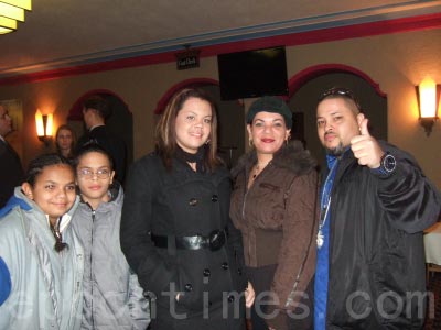 ![]() 二月二十七日晚,音乐制作人马克西莫先生(右一)偕太太与三个孩子来罗切斯特大剧院观看了神韵晚会。 |