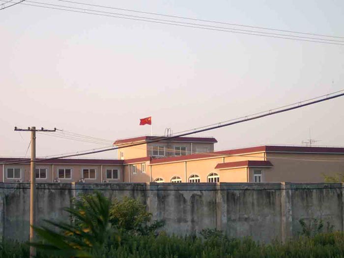 在大丰这穷乡僻壤搭建关押犯人的监房非常简陋。第一劳教所的每一中队是一个长方形的院子,两排监室面对面并排着,每排约有十二间房,另两端一端是厕所,一端是大门,完全封闭,前面是大小铁门的进出口,其余三面是围墙,上面有碎玻璃和铁丝网,两侧营房的中间是块空地,这是每天早上出操以及对犯人训话用的,空地靠后围墙有一个岗亭,警察专门用于对犯人的监视、洗脑。