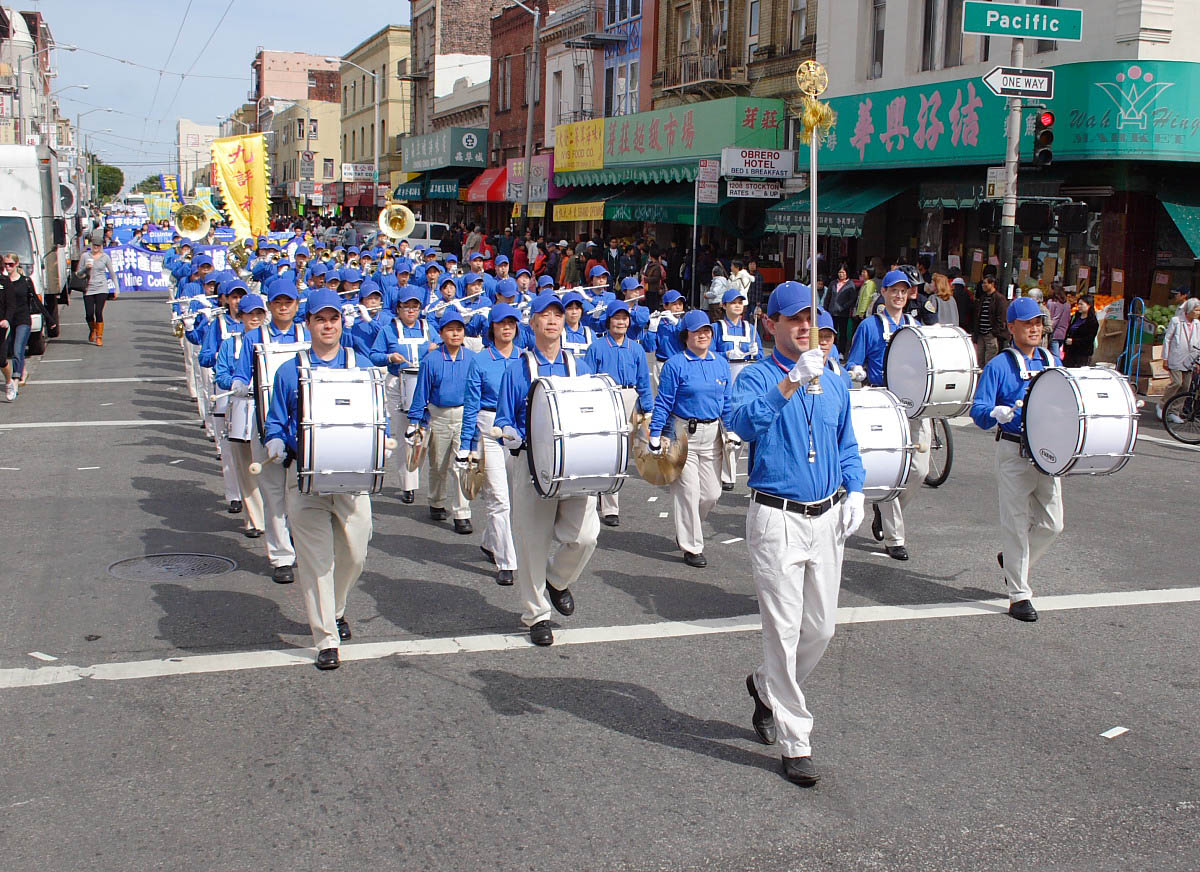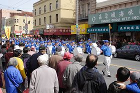 ![]() 法轮功天国乐团参加了游行 |