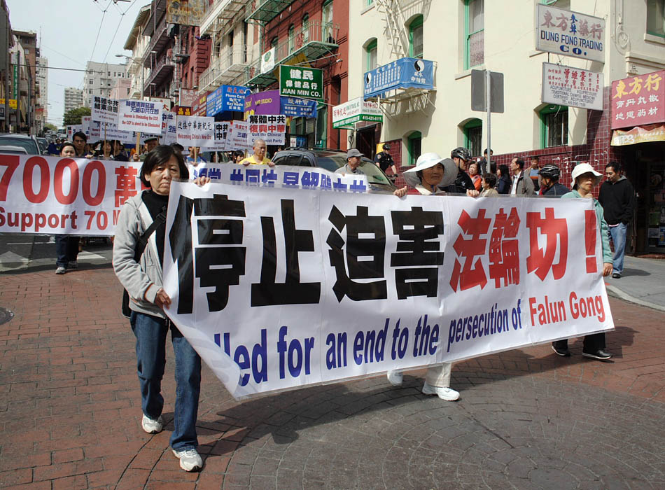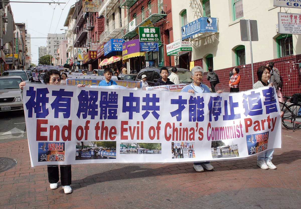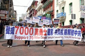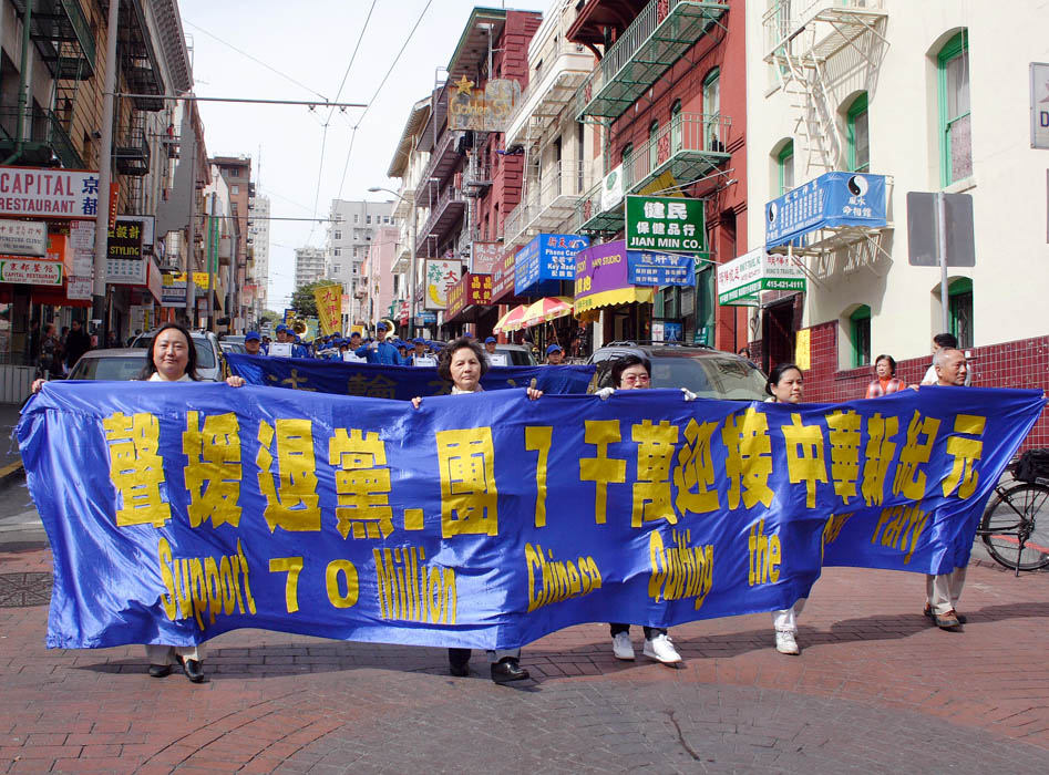 ![]() 声援退!党!的游行队伍经过中国城 |