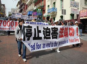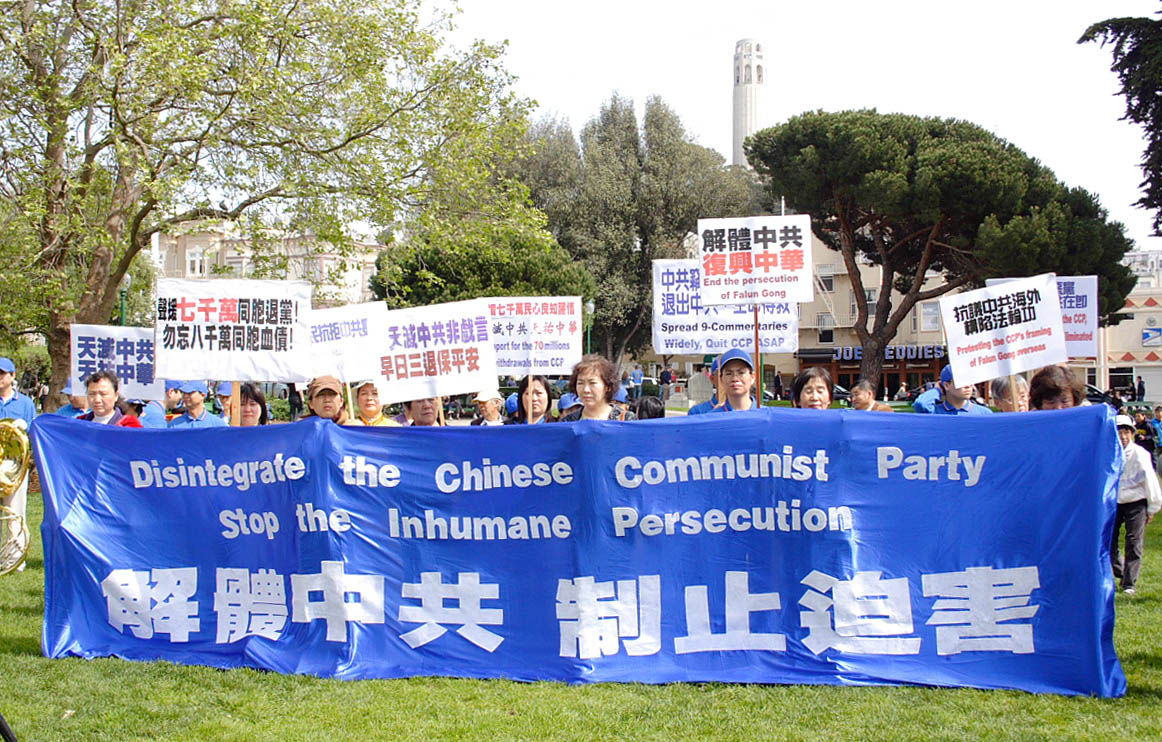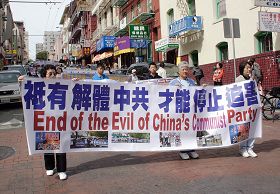 ![]() 游行横幅上写着:只有解体中共 才能停止迫害 |
