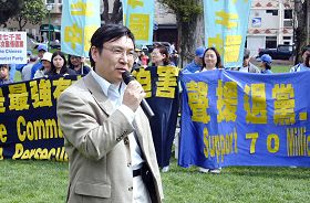 ![]() 旧金山退!党!服务中心代表马有志博士在发言 |