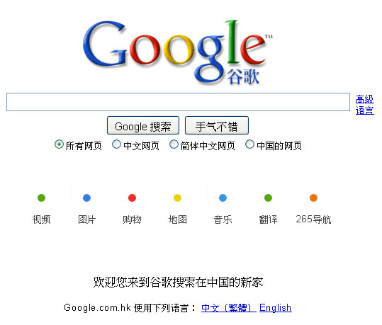 ![]() 谷歌(Google)表示已停止对google.cn的搜索服务审查,并且其页面已被引导至香港的Google.com.hk。(网站截图) |