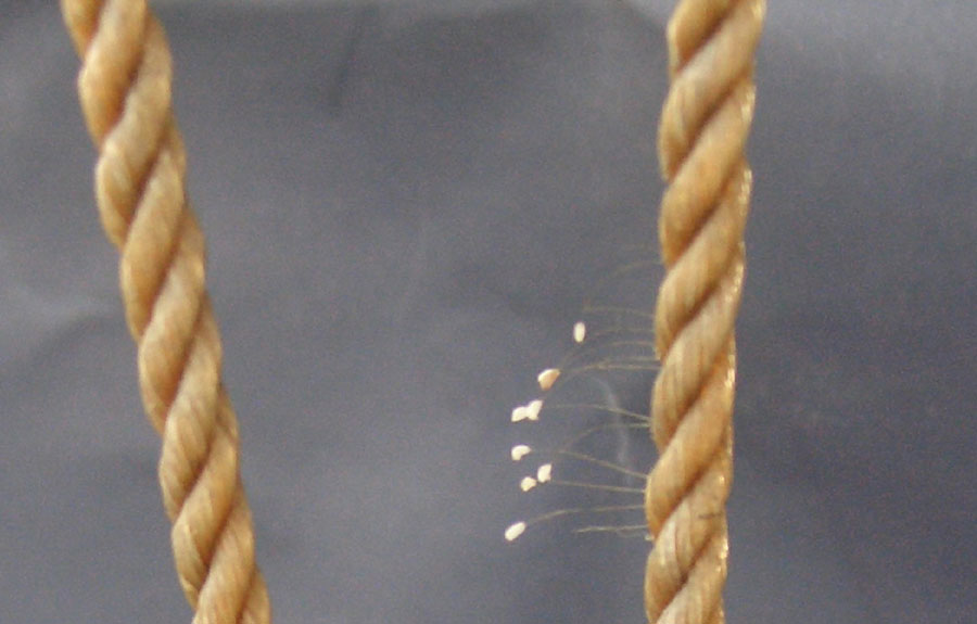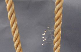 二月二十七日,印尼北苏门答腊棉兰(Medan)的法轮功学员惠惠充满惊喜。她在一根绳子上发现了一簇优昙婆罗花,另外在她家三楼的兰花的叶子上也有朵朵盛开的优昙婆罗花。