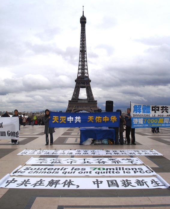 法国退!党!服务中心常年坚持在巴黎埃菲尔铁塔附近为大陆游客做退!党!服务。退!党!服务中心的义工成先生表示,每天都有大陆游客退!党!,多的时候有上百人退出。他们退!党!之后,都能看出他们轻松的样子,并向退!党!义工表示感谢。