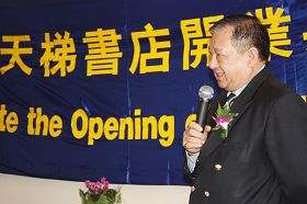![]() 纽省多元文化机构的副主席吴先生在澳洲首家天梯书店开幕式上致词 |
