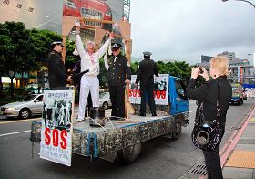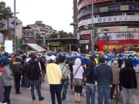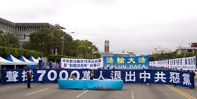 ![]() 支持七千万退!党!勇士,台湾法轮大法学会于三月七日在总统府前凯达格兰大道上举办声援大会 |