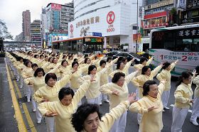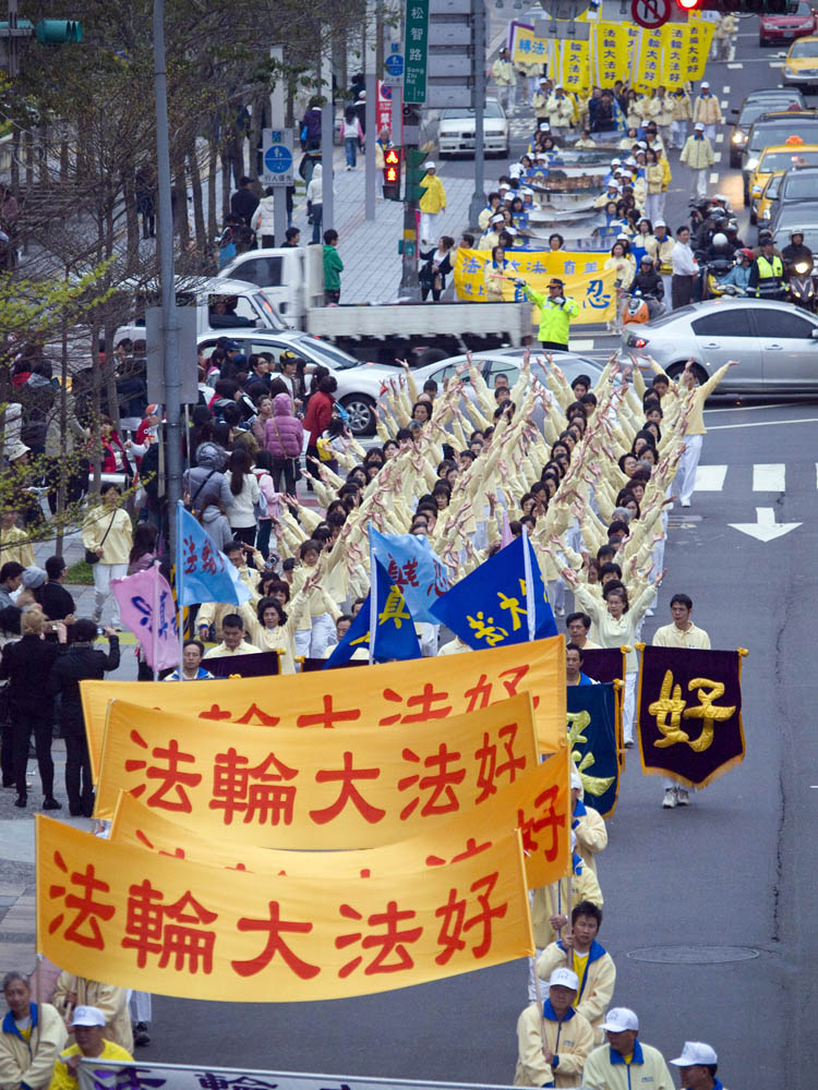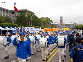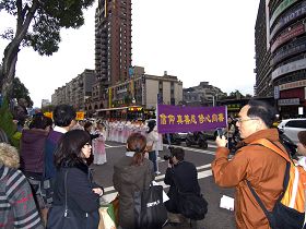 记者会后,在天国乐团演奏“法轮大法好”等乐曲的前导下开始游行,自凯达格兰大道出发,路经中山南路、青岛东路、林森南路、忠孝东路,逸仙路、松高路、松智路,终点站为一零一大楼景点的信义公园,沿途路经地区包括教育学区、最高民意机关与中央政府机关及繁华商业重地,全程近七公里。