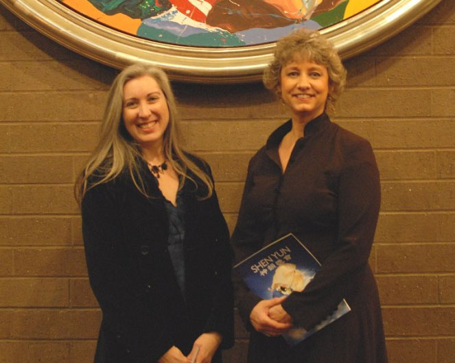 ![]() 历史博物馆馆长蓓思・瓦尔德女士(左)和朋友詹尼弗・魏尔森一同前来观看神韵演出。 |