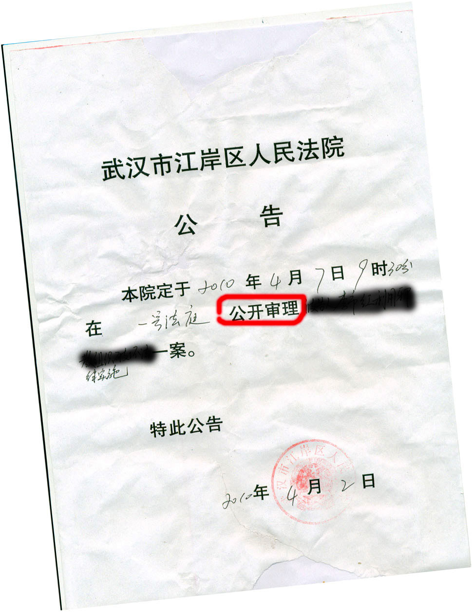 ![]() 公告栏内公开审理的公告是用来骗人的 |