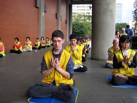 能说英、法、荷、西、中等五种语言的范德邦,今年十九岁,来台湾学中文已经半年。虽然时间不长,但他已经可以和当地人沟通,并参加法轮功学员组成的天国乐团到台湾各地游行演出,一点都不象是才到一个完全不熟悉国度的青年。他于二零零九年八月来到台湾,学中文的目的是想要读懂中文的《转法轮》,甚至进一步希望能够用中文直接对大陆游客讲清法轮功的真相。