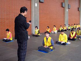 ![]() 许多观光客好奇也有西人学炼法轮功,纷纷拿起相机摄下这镜头。 |