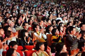 【明慧网二零一零年四月十九日】(明慧记者李缘、夏昀台湾台中采访报导)二零零二年四月十八日晚间十点,神韵台中五场演出圆满落幕。下午的第四场再度爆满,不只售完全数的票,主办单位更应观众要求加售保留区的票,场面热烈。