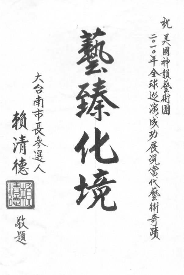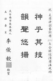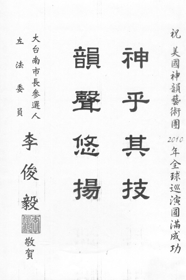 部份台南政要为神韵演出送来的贺词: