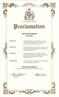 鉴此,我,卡罗纳市市长莎伦•谢波德(Sharon Shepherd),特此褒奖二零一零年五月为卡罗纳市“法轮大法月”。