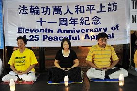 来自孟加拉国的提纳普(Tienap)先生,走过烛光晚会现场时,他径直走到静坐队伍中间,盘起腿参与在一起静坐。当记者问到为什么要自愿加入声援法轮功活动时,他告诉记者:“我知道我们地区的一个朋友在修炼了法轮功后,变得越来越善良,我觉得人们都应该来学法轮功,我就是觉得法轮功好,我就来支持你们。”
