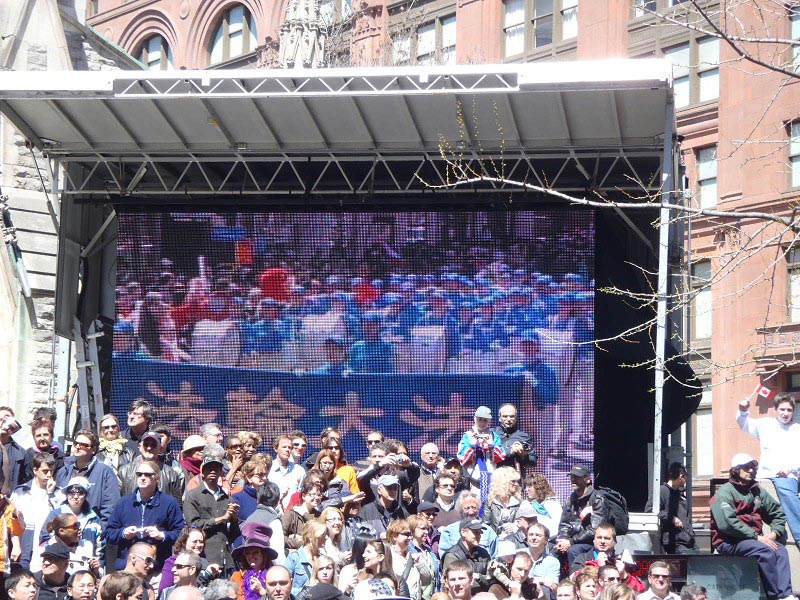 加拿大奥委会邀请包括法轮大法天国乐团在内大约十个社团参加了游行活动。据本次活动组委会介绍,约有十七万五千人参加了游行庆祝活动,许多政要和媒体都出现在现场,加拿大国家电视台CTV直播现场盛况。