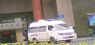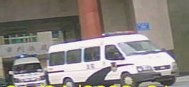 ![]() 载着董绍太的警车驶出法院 后面紧随的是救护车 |