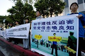 ![]() 洛杉矶法轮功学员烛光纪念“四•二五”十一周年 |