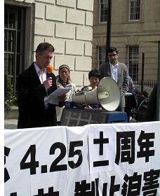 ![]() 欧洲法轮功之友副主席约翰•迪在集会上发言 |