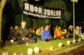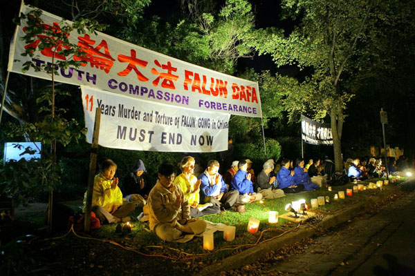 ![]() 墨尔本中领馆前,法轮功学员烛光悼念被中共迫害致死的中国大陆同修。 |