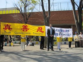 日本法轮大法学会代表鹤园雅章首先表示,纪念“四二五”这个非同寻常的日子,中共对法轮功异常残酷的迫害还在继续,对美国国会以压倒多数通过要求中共立即停止对法轮功学员迫害的605号决议案感到欣慰,也希望日本政府能做出同样的正义之举。