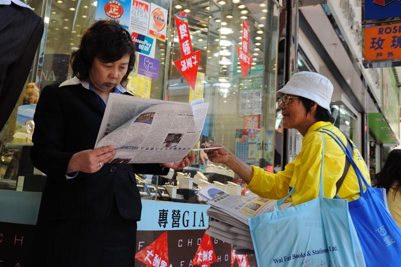 一位拿着义工派发的《明慧周报》的女游客直言心灵受到冲击,“以前听说过,但是没有见到过,还觉得有冲击!”另一位女游客表明香港所见和大陆的宣传不一样,“可能还是体制的不一样,但是我们在国内跟这里完全不一样,会很惊讶!”